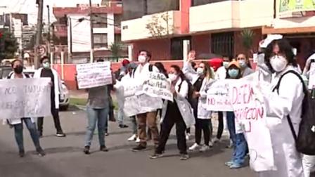 Graduados de medicina realizaron un plantón en las afueras del Consejo de Aseguramiento de la Calidad de Educación Superior (Caces)