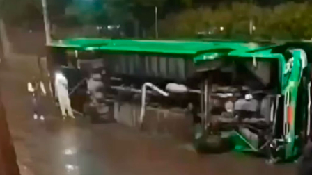 Cierre en la av. Oswaldo Guayasamín sector La Hormigonera por volcamiento de bus