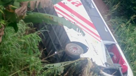 Alrededor de las 03:00 un bus de la cooperativa Reina del Camino peridó pista y se precipitó en un barranco, donde terminó hundido en la vegetación, en el kilómetro 44, cerca a San Pedro de Suma.