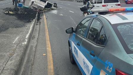 Uno de los últimos se reportó en la vía Perimetral, cerca del ingreso a la ciudadela Puertas del Sol, sentido hacia el sur. Una camioneta con carga quedó volcada en medio del parterre.