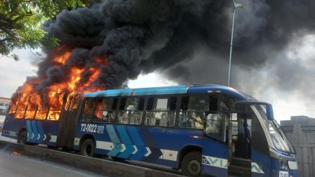 Un bus de la Metrovía se incendió cerca del Cementerio General de Guayaquil