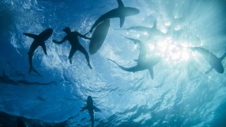 Tiburones nadan junto a buzos en el océano (imagen referencial)
