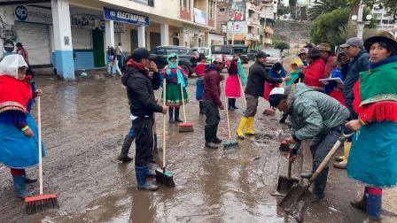 Los trabajos de limpieza en el cantón Alausí, en la provincia de Chimborazo, continúan este jueves 19 de febrero del 2026, tras el aluvión registrado la tarde del viernes por las fuertes lluvias.