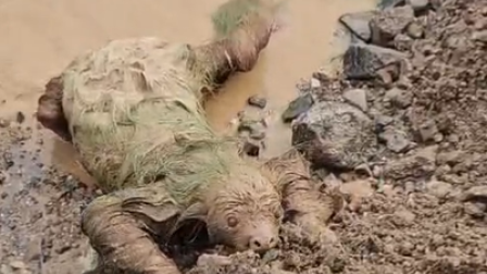 Ciudadanos rescatan a oso perezoso atrapado en el lodo tras aluvión en Balsapamba