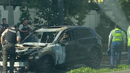 Vehículo completamente incinerado en el sector de Urdesa en Guayaquil