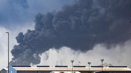 Humo se eleva desde la refinería de petróleo de Teherán tras los ataques aéreos en Teherán, Irán, el 7 de marzo de 2026.