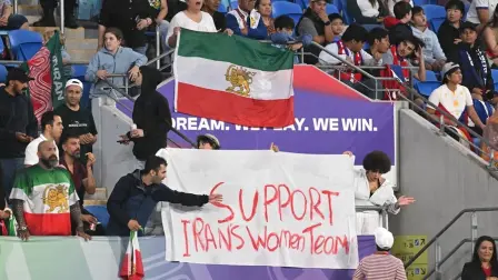 Vista de un cartel de apoyo a las jugadoras de la selección femenina de Irán, el 8 de marzo de 2026, durante la Copa de Asia, que se disputa en Australia.