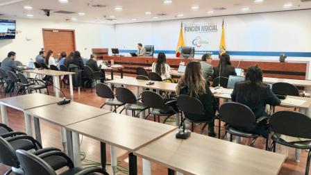 La audiencia se reinstaló este domingo a las 15:00 con Alvarez presente en una unidad judicial de La Libertad luego de que su abogado, Ramiro García, denunciara problemas de conexión desde la cárcel de El Encuentro.