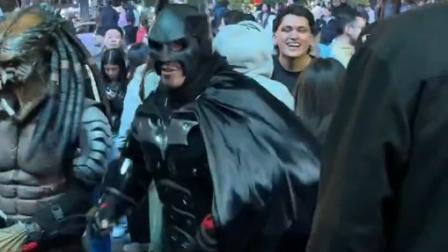 Una de las escenas más llamativas fue dos personas disfrazadas de 'Superhéroes'. Luciendo el traje de 'Batman' y 'Depredador' se mezclaron en los festejos de un grupo de personas. Esto llamó la atención de curiosos que grabaron a los dos personajes celebrando a Quito.