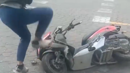 En el video se observa al hombre completamente fuera de control y enfurecido saltando sobre la moto para destruir todos sus componentes.