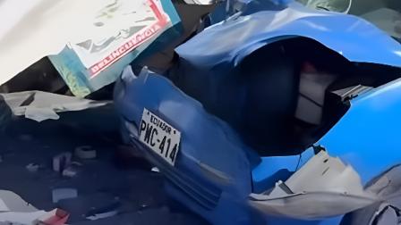 Quito: choque en la avenida 10 de Agosto, en el norte, destruyó un negocio y dejó daños materiales