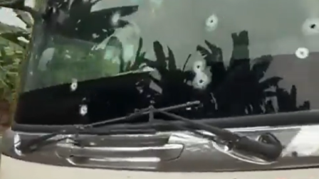 Videos registrado por usuarios de redes sociales muestran a un camión que quedó a un costado de la vía con impactos de bala en su parabrisas tras el supuesto intento de robo.