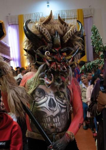 - Esta tradición está marcada por la simbólica irrupción de los "diablos" en la iglesia. Esta ceremonia representa el triunfo de la luz sobre el mal.