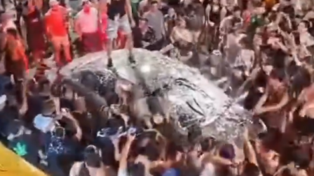 Otros transeúntes lanzaban espuma y se subían al automóvil para bailar.