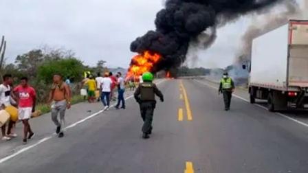 Al menos siete muertos y decenas heridos tras incendio de un camión cisterna cargado de gasolina que se volcó en la carretera entre Barranquilla y Santa Marta, Colombia, así lo informaron este lunes las autoridades.