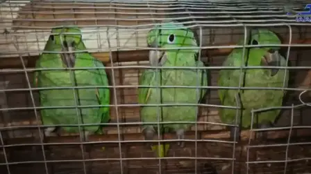 Tres loros fueron hallados en una jaula metálica. Los animales son de origen amazónico y se encuentran en riesgo.