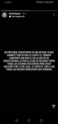 "No pretendo convertirme en víctima ya que durante toda mi vida la lucha y el trabajo constante han sido el sello que me ha caracterizado. Es por ello que he decidido tomar todas las acciones necesarias para exigir -inclusive por la vía legal- el respeto con el que todas las mujeres merecemos ser tratadas", ahondó.