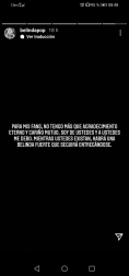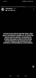 "En los últimos días personas públicas y medios han traspasado la barrera del respeto llegando al punto de emitir comentarios que constituyen violencia de género, juzgándome por el hecho de haber tomado decisiones que solo me corresponden a mí", expresó la cantante en un mensaje en la red social de Instagram.