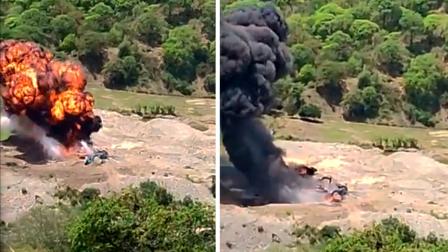 En imágenes difundidas en redes sociales se observa el momento en que los misiles derriban las excavadoras. Producto del impacto, una gran nube de humo y un fuerte estruendo causaron alarma en los habitantes de la zona.