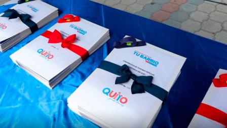 El alcalde de Quito, Jorge Yunda , y varias autoridades municipales entregaron los títulos de propiedad, en el marco del proyecto "Regula Tu Barrio"