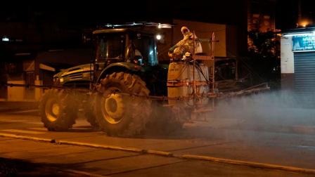 Junto a su mensaje, el jefe de Estado incluyó un video nocturno en el que se aprecia equipos que fumigan las calles.