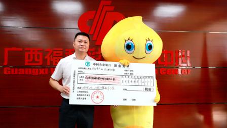 Al canjear el premio, el hombre se puso un disfraz con el tema de la mascota de la Lotería de Bienestar de Guangxi, Fudou, y se tomó una foto grupal con los reporteros de los medios y el personal que presenciaron el evento.