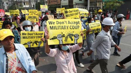 Entretanto, la ONU declaró que por lo menos 138 manifestantes pacíficos han sido abatidos en protestas desde el golpe militar del 1 de febrero.