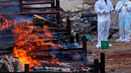 La India notificó este miércoles un nuevo récord en la cifra de fallecidos, que superó por primera vez la barrera de los 4.500 diarios, a pesar de que las infecciones siguen mostrando una tendencia a la baja en esta segunda ola de contagios por coronavirus que ha colapsado el sistema sanitario.
