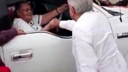 "Ya recibí tu carta, sí, sí, ya recibí tu carta", le comenta a la mujer el presidente mexicano.