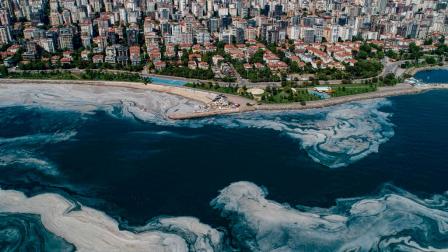 Una espesa capa de espuma y mucílago marino cubre estos días amplias partes de la costa de Estambul, Turquía, y del mar de Mármara. Debido al calentamiento del planeta, este fenómeno, que puede tener graves consecuencias para la vida marina, amenaza con convertirse en anual, advierten los científicos.