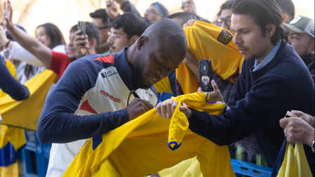 El delantero de Ecuador, Enner Valencia, firma autógrafos a los hinchas.