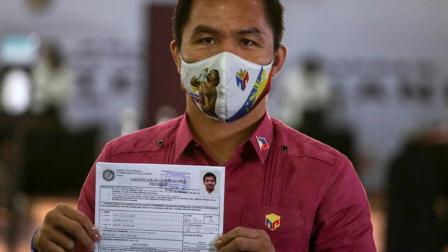 Los aspirantes solo pueden estar acompañados por tres personas, y todos deben pasar pruebas de detección del coronavirus antes del registro. Pero cientos de seguidores del exboxeador, con mascarilla y pequeñas banderas filipinas, lo esperaron en las calles próximas al complejo para animarlo.