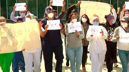 Personal de salud del Centro de Atención Bicentenario realizó una protesta tras recibir notificaciones de despido por parte de la Secretaría de Salud.