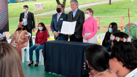 El presidente Guillermo Lasso conmemoró este martes el Día Internacional de la Mujer. En los actos se anunció la entrega de créditos al 1 % a mujeres emprendedoras y la reforma al decreto para adelantar y dar mayor cobertura a niños y adolescentes huérfanos de madres víctimas de femicidio.