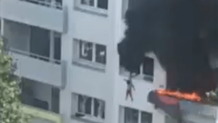 Las imágenes del dramático rescate del martes mostraron que uno de los hermanos fue arrojado desde una ventana que estaba a unos 10 metros de altura mientras las llamas envolvían un balcón y salía humo negro.