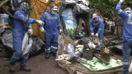 Personal de Emaseo procedió a limpiar el lugar y botar todos los objetos para evitar que otros habitantes de calle vivan allí