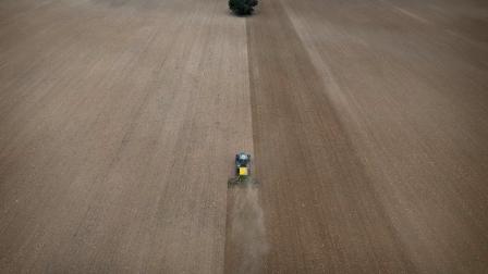 Un tractor siembra cereal en un campo de Caravaca, en Murcia.