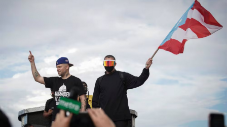 Residente y Bad Bunny participaron en una marcha para celebrar la dimisión del gobierno de Puerto Rico en 2019.