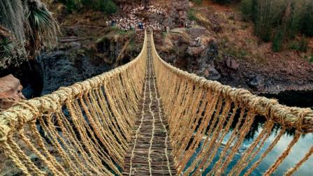El último puente colgante de la época incaica que se alzaba sobre el río Apurímac, en la región peruana de Cusco, cayó destruido sobre su caudal, dado que toda su estructura era de paja tejida y solía ser renovada anualmente en una ceremonia declarada patrimonio cultural de la humanidad.