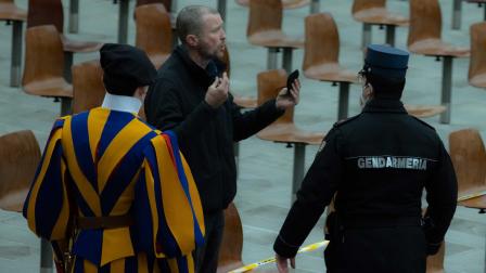 Finalmente fue acompañado afuera de la sala sin mostrar resistencia por miembros de la Gendarmería vaticana.