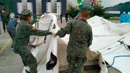 El hospital móvil, que fue trasladado de Quito a Guayaquil, cuenta con 40 camas.