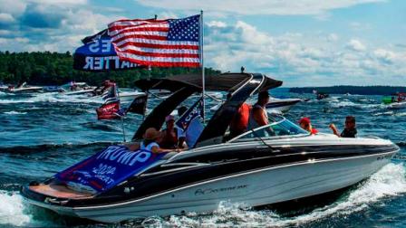 En la convocatoria a la actividad en Facebook, se invitaba a los participantes a decorar su barco “con colores patrióticos” y a enarbolar “tantas banderas de Trump como pueda”.