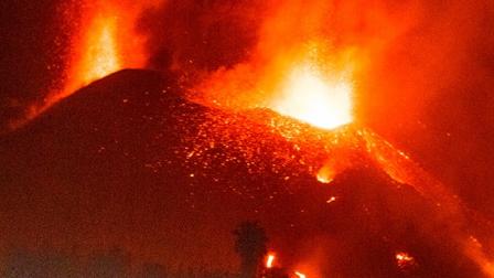 El volcán de la isla española de La Palma se encuentra en el momento de mayor actividad desde su erupción. Este lunes sufrió un nuevo colapso parcial del cono, del que mana una gran fuente de lava, informa el Instituto Volcanológico de Canarias (Involcan).